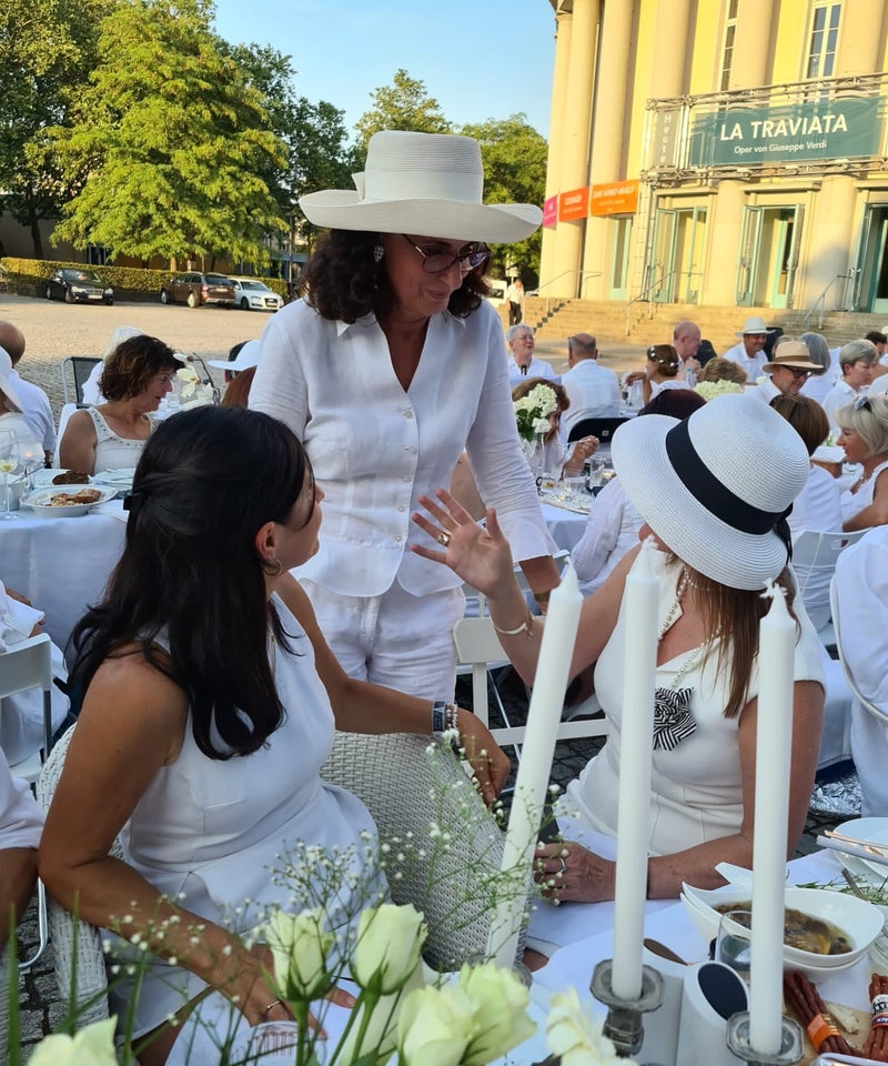 Mein Name ist Barbara Wozniczek, dinerdomino.de ist kein Unternehmen, sondern eine private Initiative in Saarbrücken, die Organisation und Ausrichtung des Events habe ich von Pascale Jahns-Petit übernommen. Wir legen großen Wert auf Kreativität in weiß. Eleganz, Gemeinschaft, Geheimhaltung und herzliche Atmosphäre.